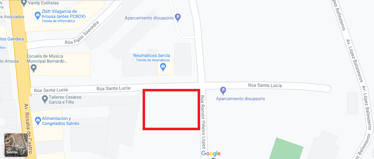 Rúa Ramón Piñeiro López esquina con Rúa Santa Lucí. Se vende solar edificable en Vilagarcía de Arousa, en la esquina de la Rúa Ramón Piñeiro López haciendo esquina con la Rúa Santa Lucía